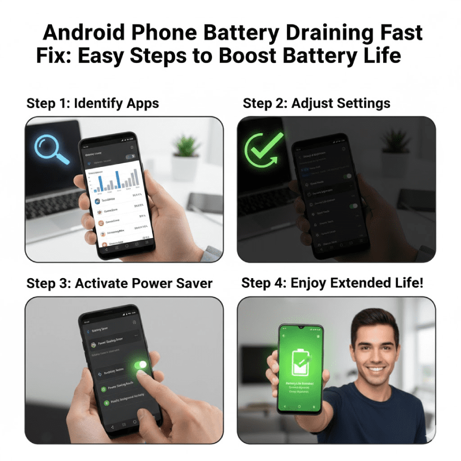 If your Android Phone Battery Draining Fast Fix is what you need right now, you are not alone. Many people in the US and UK face this issue every day. It can happen after an update or from bad apps. Your phone might die quickly even when you do not use it much. This guide shows simple ways to stop the drain. We use tips from real users and experts. Follow these steps to make your battery last longer. You can do most fixes without tools. Start with easy checks and go deeper if needed. This works for most Android phones like Samsung or Google Pixel.