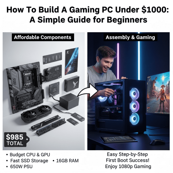 If you want to know How To Build A Gaming PC Under $1000, you are in the right spot. This guide helps new builders and folks on a tight budget make a strong machine for games. You can play at 1080p with good frame rates without spending too much. We will cover parts, picks, steps to put it together, and tips to get the most out of your setup. Based on fresh info from 2026, prices stay fair for solid parts like AMD CPUs and new GPUs. This build aims for fun gaming without breaking the bank. Let’s dive in and see How To Build A Gaming PC Under $1000 that runs smoothly.