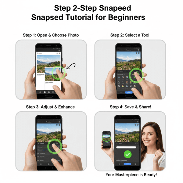 This Android photo editor tutorial starts with open Snapseed. Tap plus to add a photo. Go to Tools. Pick Tune Image. Swipe up for options like contrast. Swipe left or right to adjust. Tap check to save. Try Curves for tone control. Drag points to shape curve. Use Brush to dodge or burn. Set strength and paint area. For text, use the Text tool. Type and style. In Canada, this helps social posts. Compare before and after with hold. Export to gallery. Do simple edits first.