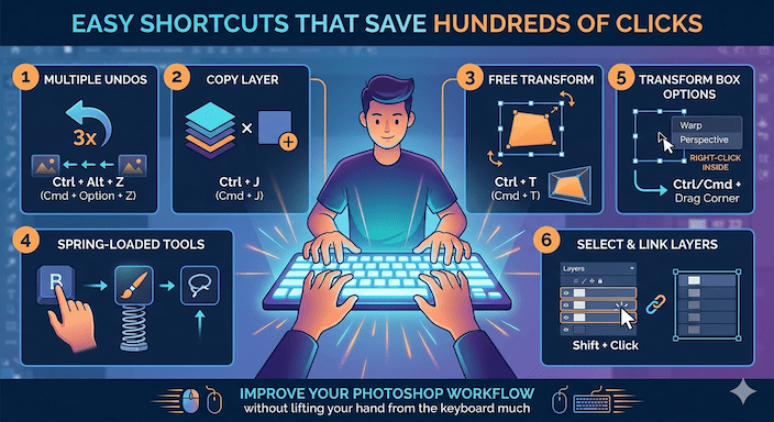 Repeat these Photoshop editing hacks, and they become natural. Your speed and quality both improve.